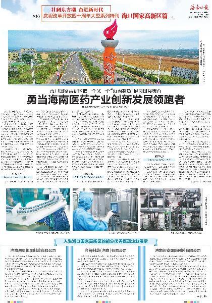 海南長安國際制藥有限公司榮登2018年12運27日《海南日報》A10版慶祝改革開放四十周年大型系列特刊海口國家高新區(qū)篇“勇當(dāng)海南醫(yī)藥產(chǎn)業(yè)創(chuàng)新發(fā)展領(lǐng)跑者”一欄。詳細(xì)報道如下:
