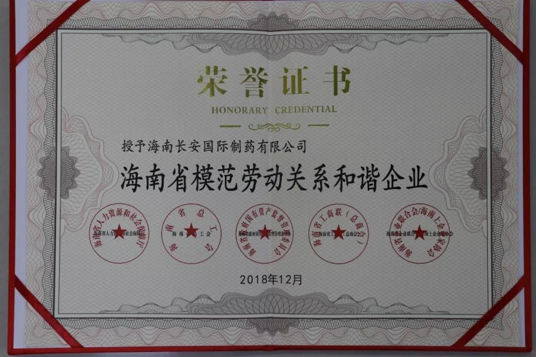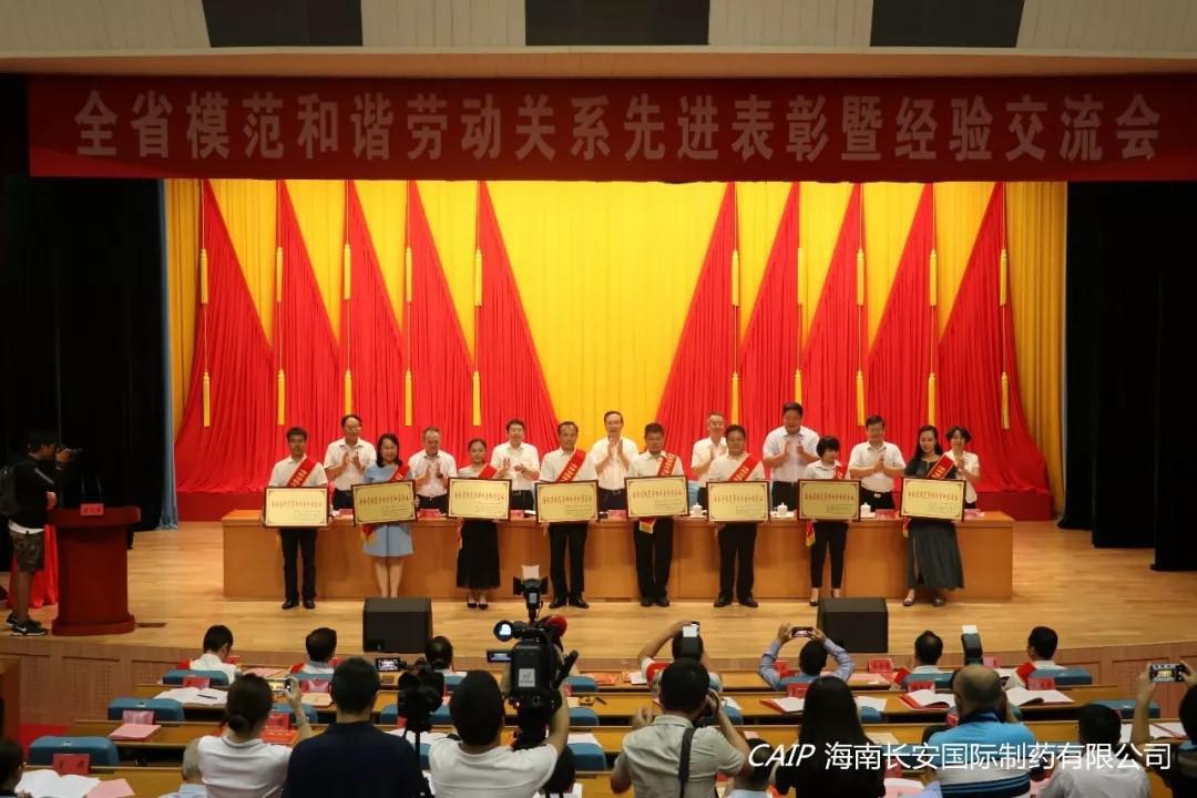 海南長安國際制藥有限公司被授予“海南省模范勞動關(guān)系和諧企業(yè)”榮譽稱號!