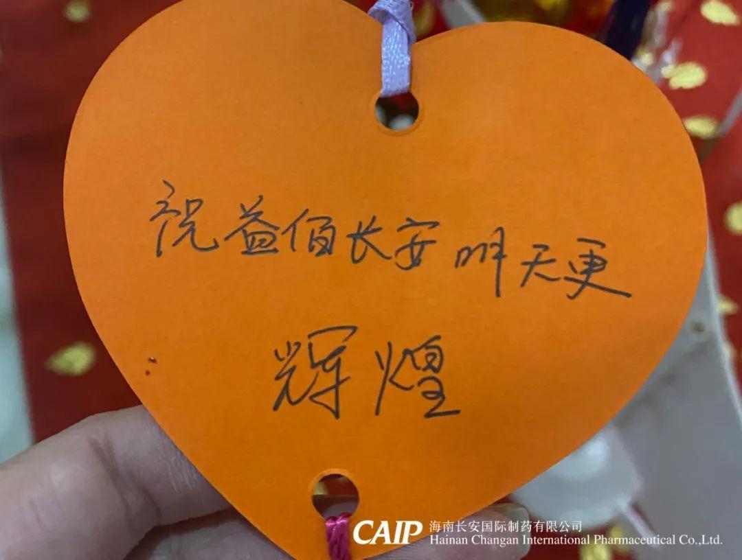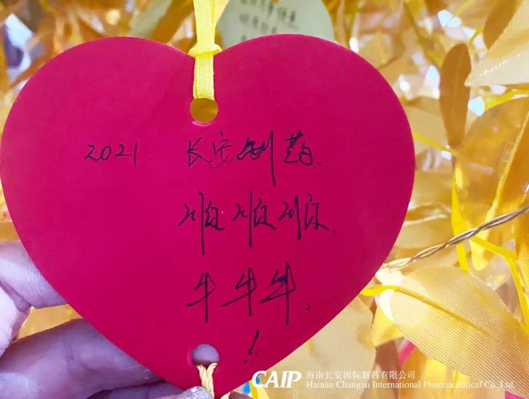 許下心愿的同事們臉上洋溢著快樂的微笑,一張張的心型的祝福卡片被掛在金色的許愿樹上,這些祝福中蘊含著長安人對辭別舊歲喜迎新年的美好愿景和內心最深處的愛意,同時也包括了同事們對長安制藥的真切祝福,對同事的美好祝愿,對個人未來的美好憧憬。