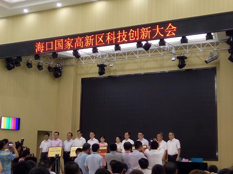 7月11日,海口國家高新區首屆科技創新表彰大會在藥谷工業園隆重舉行,高新區全體干部職工,高新發控公司、孵化器運營管理中心主要負責人以及園區企業代表共400余人參加會議。