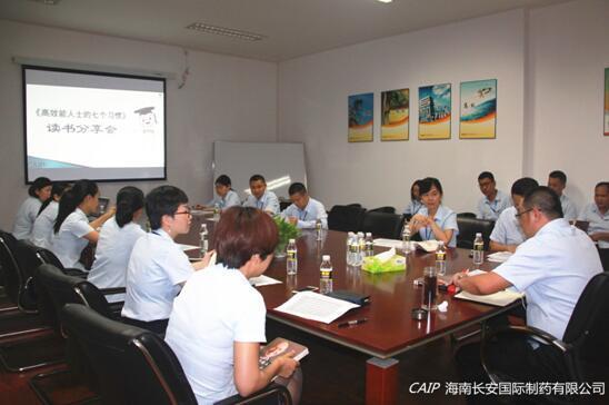 4月27日下午,《高效能人士的七個習慣》之讀書分享會在一派書香氣味中拉開帷幕。海南長安國際制藥有限公司總經理汪立冬攜全體中層管理人員積極參與此次活動。