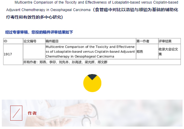 洛鉑對(duì)比順鉑在食管癌輔助化療中的研究論文獲CCO收錄