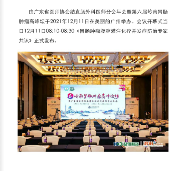 洛鉑重磅:《胃腸腫瘤腹腔灌注化療并發癥防治專家共識》正式發布